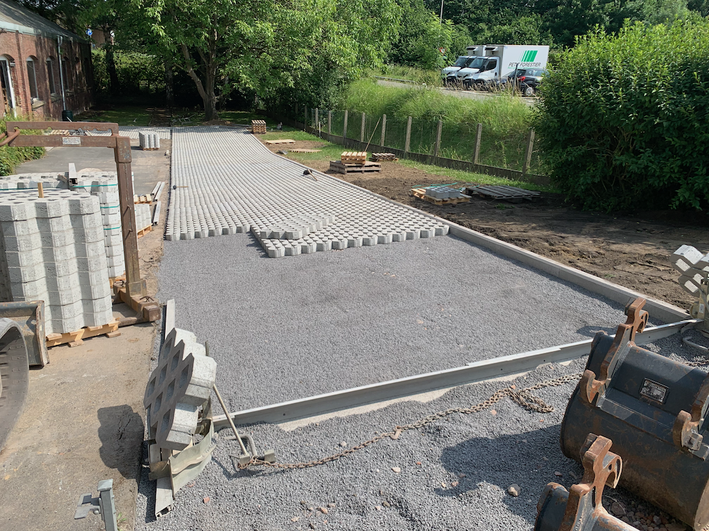 Aanleg van parkeerplaatsen.